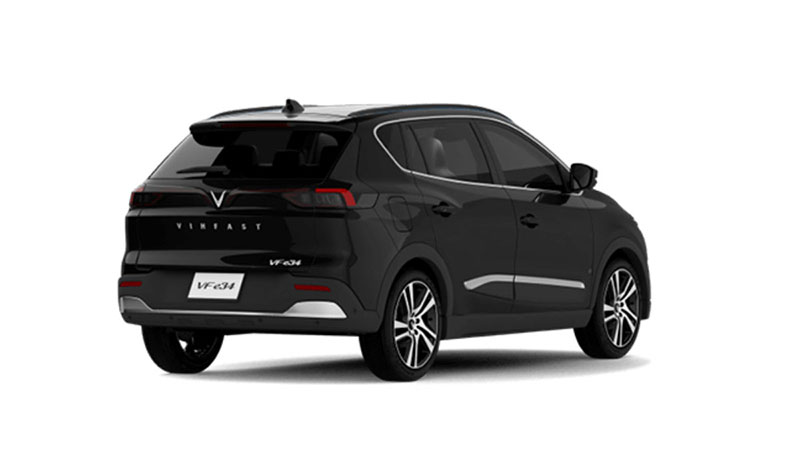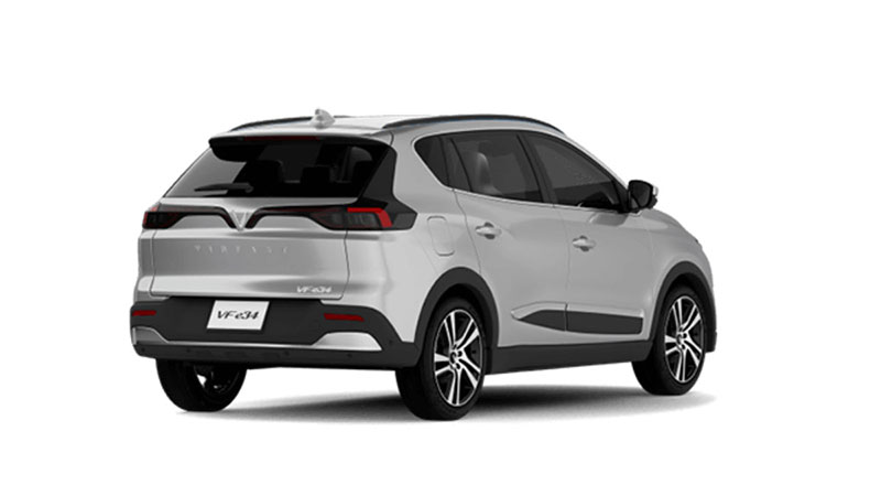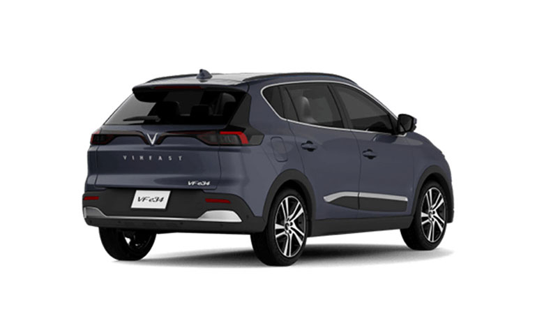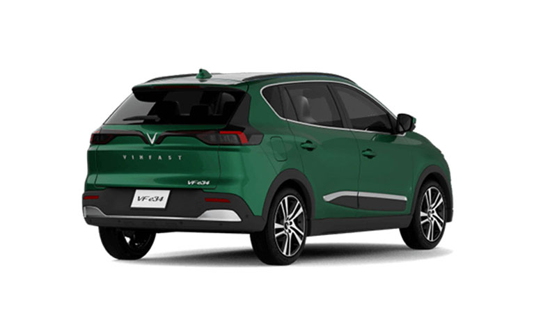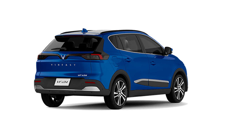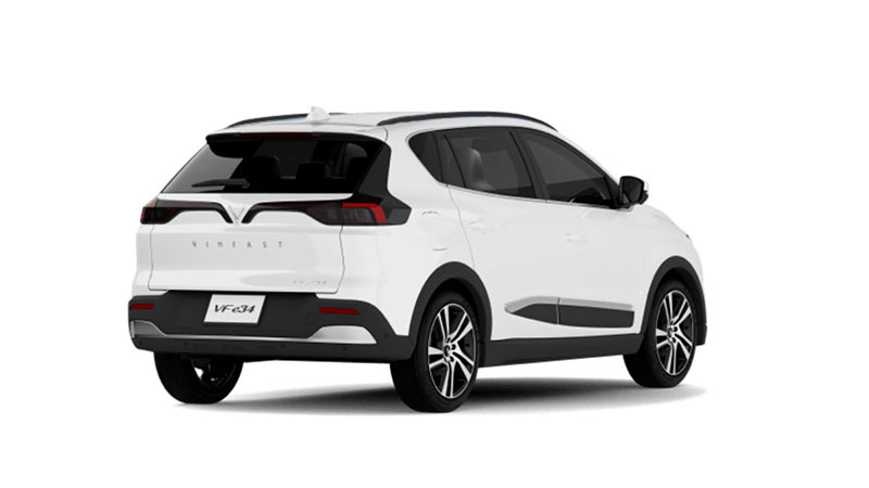 Đuôi xe của VinFast VF e34 có thiết kế giống với một chiếc SUV nói chung và gợi nhớ nhiều đến chiếc Lux SA2.0 do có đèn hậu tương tự nhau; đèn phanh trên cao tích hợp cùng cánh lướt gió; đèn phản quang nằm tại 2 đầu của cản sau… Giống với nhiều chiếc xe chạy bằng nhiên liệu truyền thống khác, VF e34 cũng được trang bị các cảm biến hỗ trợ đỗ xe phía sau và camera lùi.